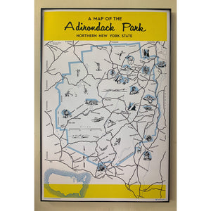 Adirondacks vintage Blue Line map ADK land use w/ unique history